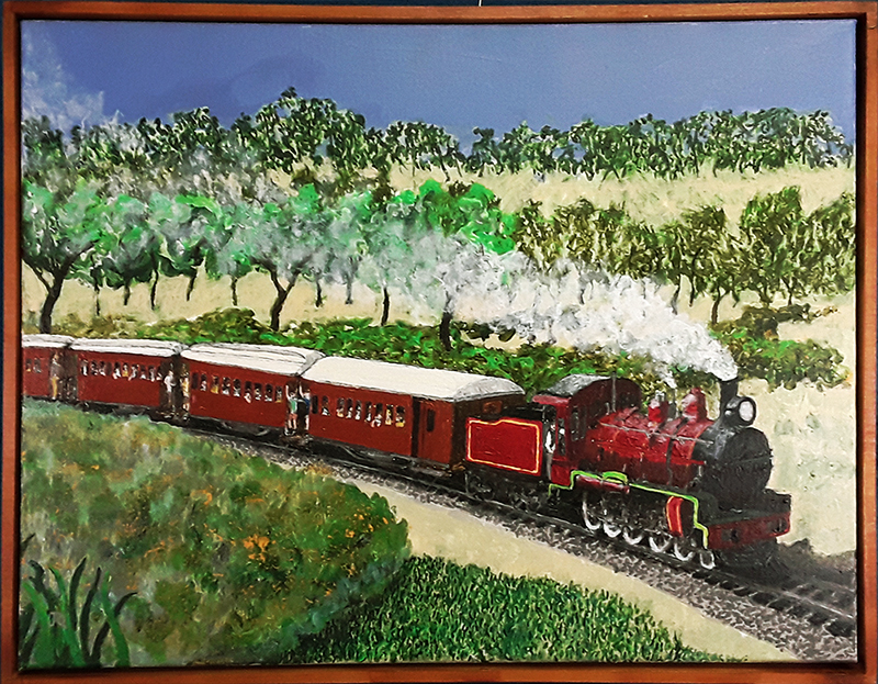 “C17 The Excursion Train”, Framed, acrylic on canvas, sized at 50cm x 40cm.